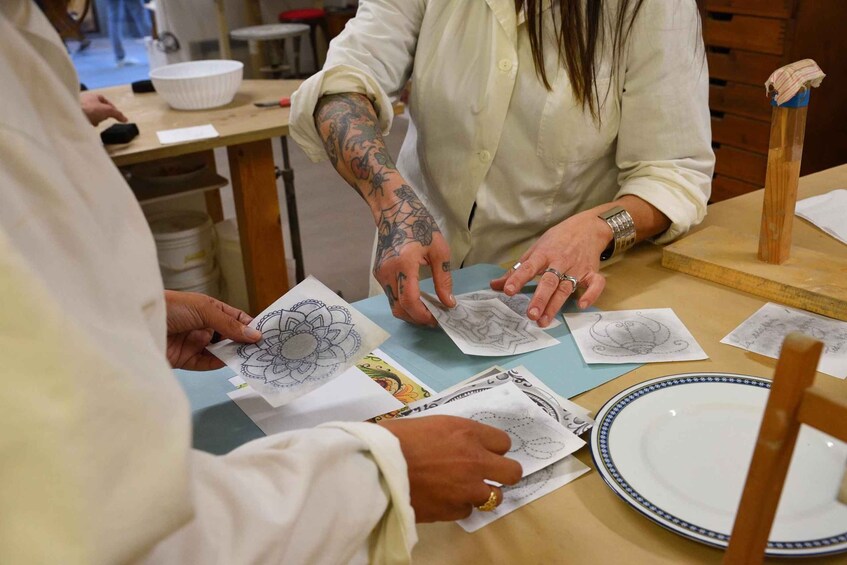 Mugello, Tuscany. Majolica decoration technique workshop.