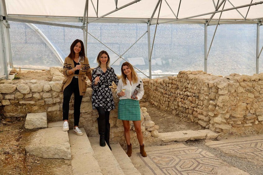 Welcome to our winery, nestled in the heart of the Valpolicella Classico hills. As you step into the external courtyard of our cellar, the breathtaking panorama unfolds before you—a patchwork of vineyards, bathed in sunlight. Our journey begins with a minivan ride to a hidden gem—the recently unearthed Roman villa beneath our Amarone vineyards. Imagine walking in the footsteps of ancient Romans, their lives intertwined with the very soil you tread upon. Here, we’ll savour a unique white wine, crafted exclusively for this occasion. Our guide, a passionate historian, will transport you back in time, sharing tales of the villa’s inhabitants, their dreams, and their daily rituals. Returning to our cellar, we invite you to share our vision—a harmonious blend of wine and agriculture. Here, surrounded by oak barrels and the earthy scent of ageing wine, we’ll taste three exceptional wines: Valpolicella, Amarone, and Recioto. Each sip carries the essence of sun-kissed grapes, the terroir, and the passion of our winemakers. To accompany this sensory journey, we present a culinary delight—a dish inspired by ancient Roman recipes. Imagine flavours of heirloom cereals, legumes, and a perfectly aged cheese—a symphony of taste that bridges the past and the present.