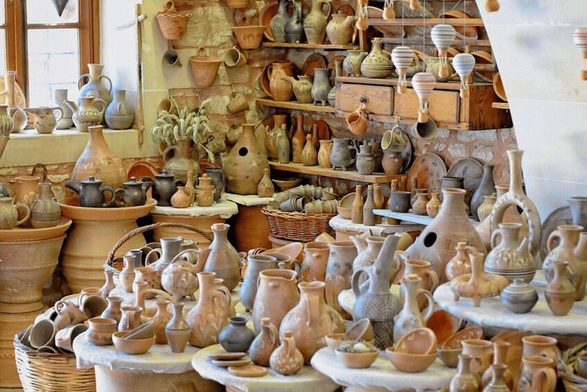 Start in the captivating city of Rethimno, where Venetian and Ottoman influences shape the old town's narrow streets and picturesque harbour. Then, visit the historic Arkadi Monastery, a symbol of Crete’s resilience, set amidst the mountains. Continue to Margarites, a charming village renowned for traditional pottery. Stroll its quaint streets, watch artisans at work, and even try your hand at crafting pottery. Enjoy delicious local cuisine at a traditional taverna before driving through scenic villages, passing olive groves and rolling hills.