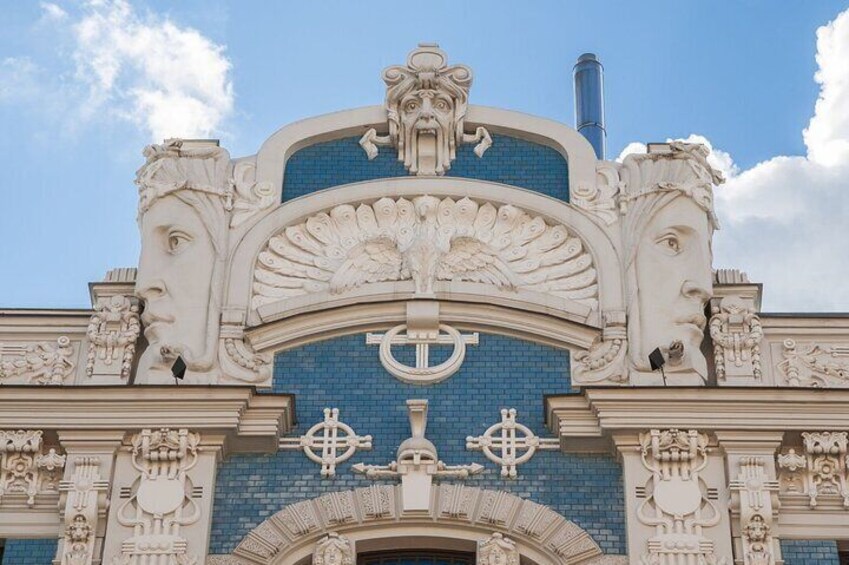 Alberta Street, where facades feature lions, gargoyles, sphinxes, birds, and elegant ladies adorned with flowers. Each building tells its own storey in stone, and your guide will explain the meaning behind these symbols and details.