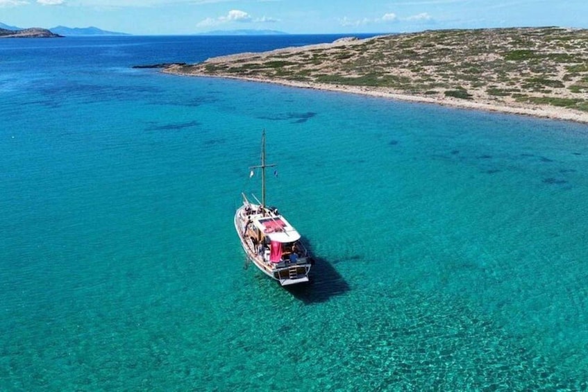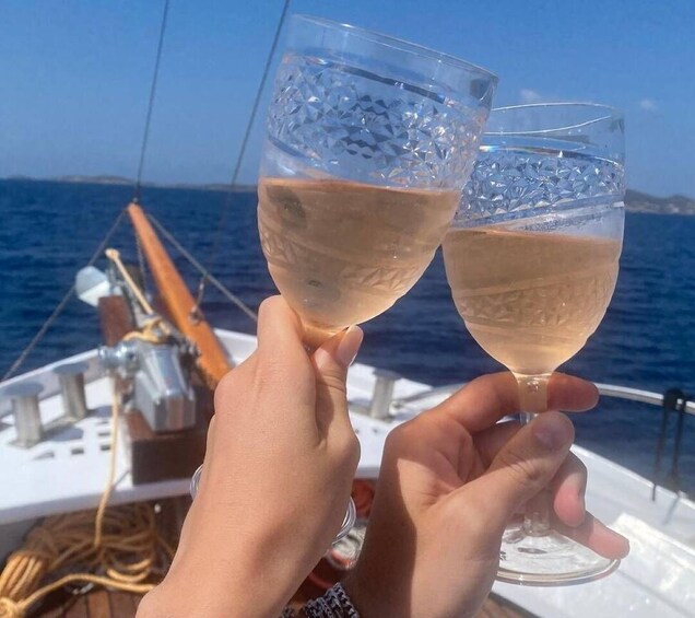 Throughout the day, enjoy the friendly, attentive atmosphere created by your English-speaking crew, who balance expert guidance with freedom to relax and explore. Lounge on deck, feel the sea breeze, and capture panoramic views of hidden beaches, cliffs, and turquoise waters. The small group size ensures a personal experience, allowing you to immerse yourself fully in both the natural beauty and culinary delights of the Cyclades.