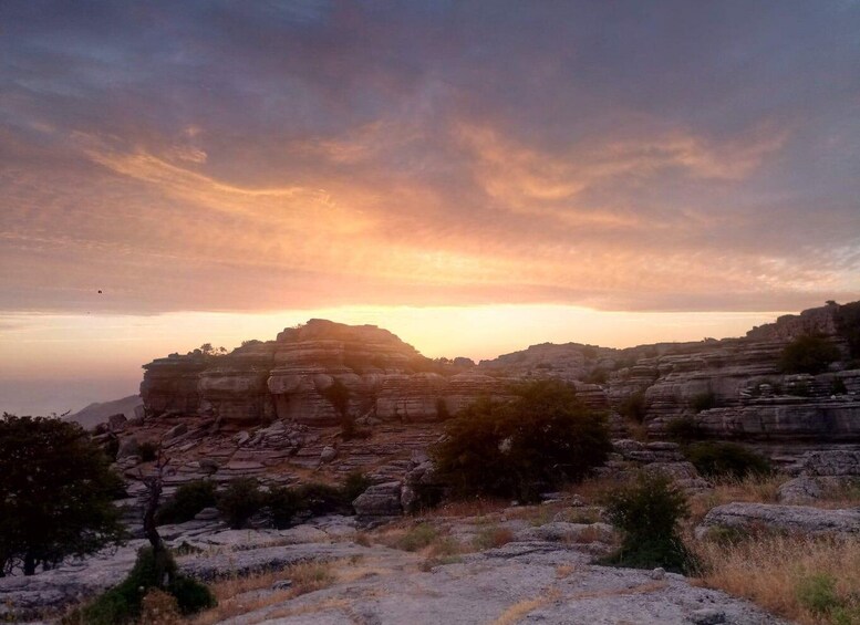 Sunset in El Torcal de Antequera with transport from Antequera