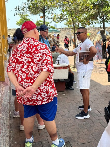Kita mulai, pada waktu yang telah disepakati, Jalan-jalan Pribadi Tur di Cartagena di Camellón de Los Mártires - Plaza de Cervantes di mana kita akan belajar tentang penduduk asli sebelum dan selama kedatangan Spanyol. Kami pindah ke “Kunci Emas Cartagena” atau Menara Jam memasuki Plaza del Ecuador, sebelum Plaza del Esclavo, sebuah pendahuluan untuk melanjutkan bagian dari rute perbudakan melalui jalan Porto Carrero dan Candilejo. Tapi pertama-tama, Pedro de Heredía menyambut kami.