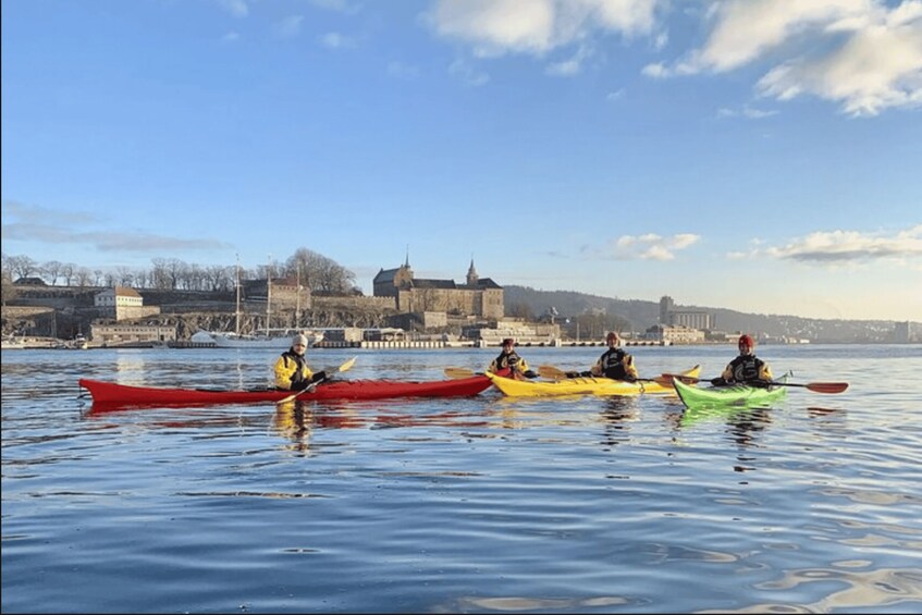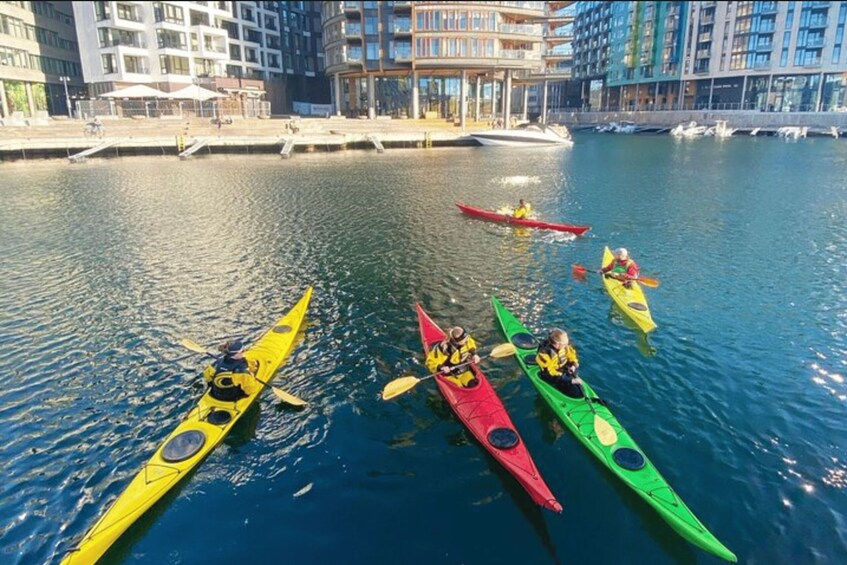 Jalur Tur dimulai dari pusat kota Oslo di distrik tepi pantai Tjuvholmen, hanya dengan berjalan kaki singkat dari stasiun pusat. Semua perlengkapan kayak sudah termasuk, dan kami menyediakan tempat yang aman untuk menitipkan barang-barang Anda dan berganti pakaian. Jika Anda siap untuk pengalaman berkayak tingkat kambing, maka kami berharap dapat segera “bertemu dengan Anda di atas air”!