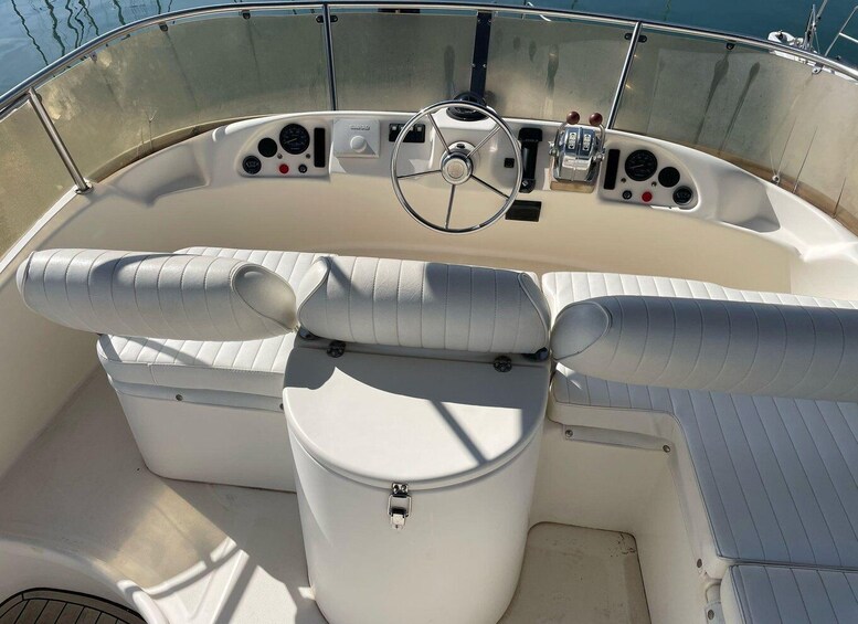 Imagine an elegant yacht gliding smoothly over crystal-clear waters, surrounded by breathtaking scenery. Our luxury boat is designed to offer a unique sailing experience, with sophisticated finishes and all the comforts you could wish for. Even though this tour is shared, exclusivity and comfort are the cornerstones of the experience. The boat's capacity is limited so that, even if you share the space with other travellers, you'll never lose that feeling of privacy that characterises a luxury ride.