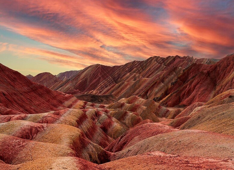 Your journey begins in Lanzhou, where you'll board a high-speed train to Zhangye. Gaze upon the snow-capped peaks of the Qilian Mountains stretching across the horizon. Upon arrival, your driver will escort you to the Colourful Danxia Scenic Area—a natural wonder renowned as one of Zhangye's, and indeed China's, most breathtaking landscapes.