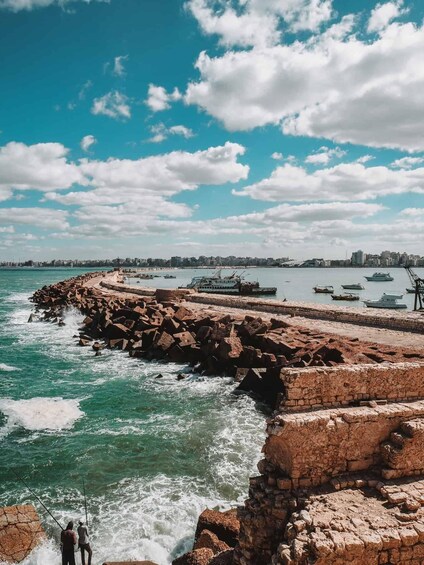 Anda juga akan mengunjungi Masjid Abbo Elabbas, masjid tercantik dan terbesar di kota ini: Masjid Abbo Elabbas, dan pemandangan teraneh di luarnya: pasar malam tua di mana anak-anak bermain di wahana pasar malam yang sangat antik dan makan permen. Di seberangnya terdapat corniche dan pelabuhan tua di mana Anda dapat melihat kapal-kapal nelayan tua, para pria yang sedang memancing dan para nelayan tradisional yang sedang membuat jaring. Anda kemudian akan melanjutkan untuk melihat bagian luar Kastil Qaitbay, yang dibangun di lokasi yang sama dengan Mercusuar kuno Alexandria, salah satu dari tujuh keajaiban dunia kuno.