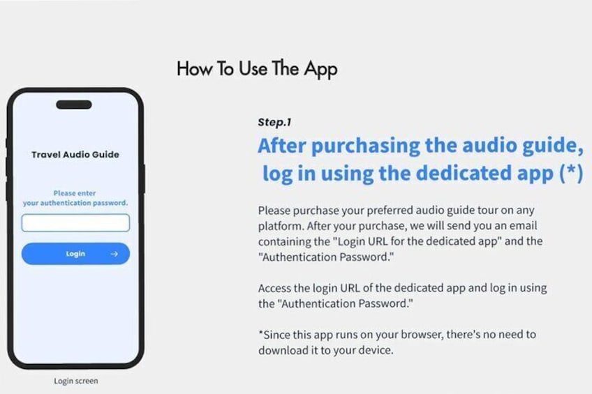 - The audio guide is accessed through each traveler’s smartphone. Travellers are requested to bring their own headphones.