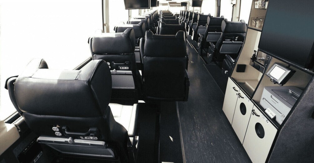 Di atas bus modern kami yang dipenuhi dengan fasilitas mewah seperti kursi kulit yang dapat direbahkan dan meja baki lipat untuk membuat pengalaman Anda menuju tujuan Anda menyenangkan dan nyaman. Kami juga memanjakan para penumpang dengan makanan ringan dan minuman gratis serta tempat duduk lorong tunggal, pilihan tempat duduk yang lebih baik, dan stasiun pengisian daya di setiap tempat duduk. Dengan pengalaman penerbangan kami yang memiliki berbagai fasilitas, kami berkomitmen untuk memastikan pengalaman yang aman.