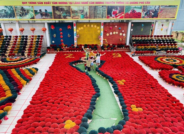 Lengkapi tur seni Anda di desa dupa Quang Phu Cau yang semarak. Berjalanlah menyusuri pusat desa untuk mengamati produksi dupa skala keluarga. Kunjungi rumah tangga yang mengkhususkan diri dalam mewarnai dupa dan ambil foto-foto menakjubkan dari bundel dupa yang berwarna-warni. Pengalaman ini diakhiri dengan tur ke pabrik dupa terbesar di desa ini, di mana Anda akan menyaksikan seluruh proses produksi dan mendapatkan wawasan tentang kehidupan para pekerja di pedesaan.