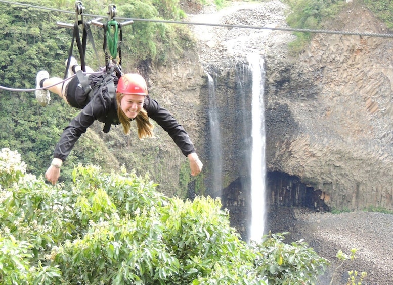 Seberangi Pastaza River Canyon dengan kereta gantung yang mengendarai kabel sepanjang 500 meter untuk mengunjungi air terjun “Manto de la Novia”, pelajari gaya hidup masyarakat setempat, dan mendaki ke sungai. Berhentilah di sudut pandang air terjun “San Jorge”, dan pulihkan energi dengan makan siang yang lezat.