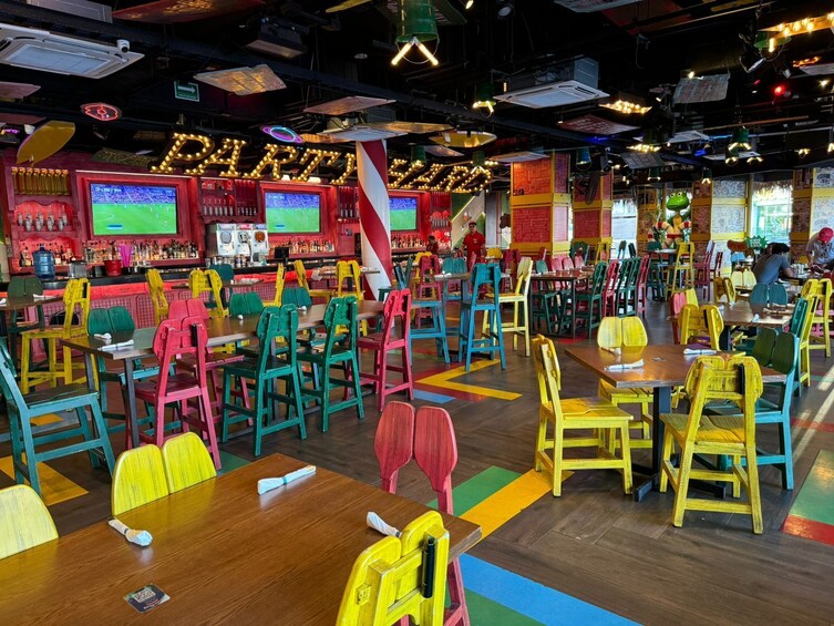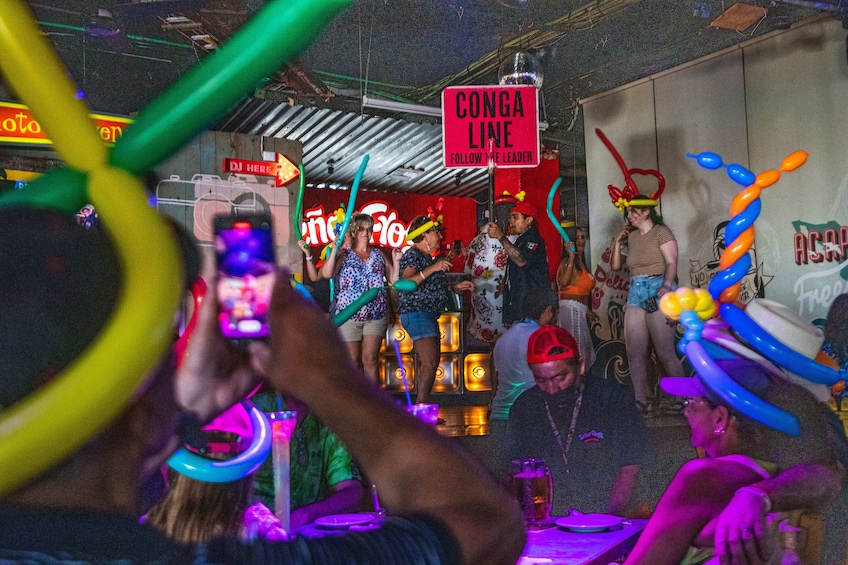 Dari saat Anda melangkah masuk ke Señor Frog's Cabo San Lucas, Anda akan dikelilingi oleh suasana yang penuh dengan kegembiraan. Tim penghibur kami yang dinamis akan membawa Anda ke dalam perayaan dengan musik live, pertunjukan interaktif, dan layanan yang luar biasa, memastikan pengalaman yang tiada duanya.