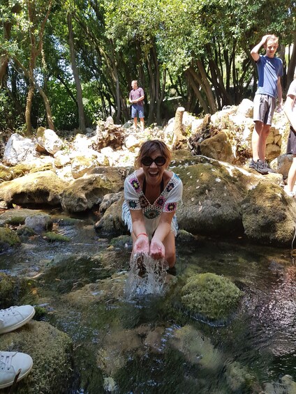Berkendaralah melalui Lembah Konavle antara Zvekovica, Mihanići dan Gruda, di mana Anda akan mendapatkan demonstrasi kemampuan kendaraan Anda. Perjalanan menyusuri jalan setapak melalui ladang dan dasar sungai dan mengagumi hutan di sekitarnya dalam perjalanan ke desa Ljuta. Segarkan diri Anda dengan makan siang di Vinica Monković, sebuah restoran keluarga lokal
