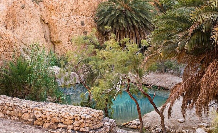 Next, head to Tamerza, a beautiful oasis situated along a canyon that will take your breath away. Cool off from the intense Tunisian heat by taking a dip in the crystal-clear waters that cascade from the canyon. Finish your day in the mountains with a walk around the old ruined village, where only the mosque is restored. Get dropped off back at your hotel in the evening.