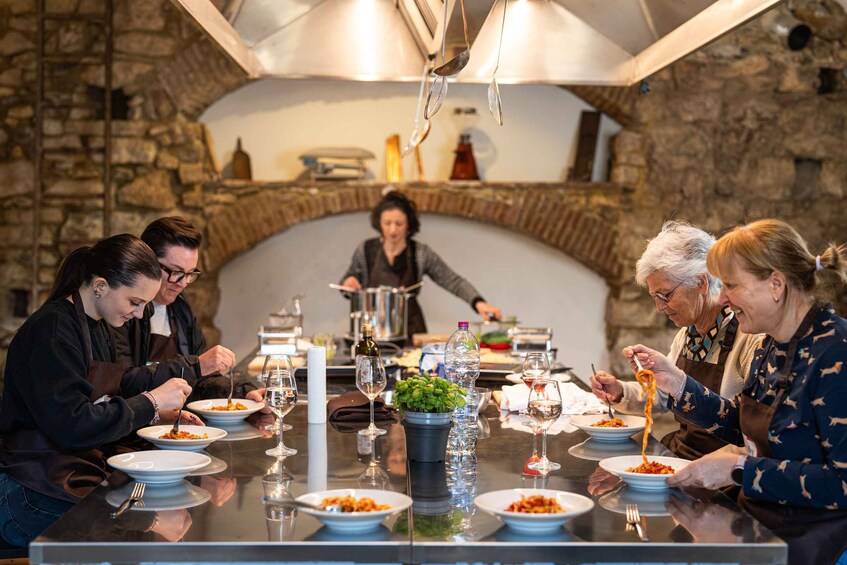 - Learn how to make two first courses seasoned with typical sauces and a dessert