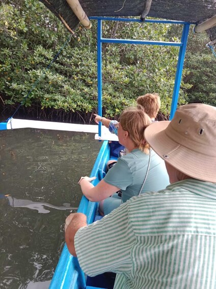 The boat glides forward — silently — cutting through the still waters like a dream. Around you, the world is green and alive. Mangrove trees stretch their roots into the bay like fingers, holding the land together, nurturing the sea. The air smells of salt and wet leaves.Your guide speaks softly, pointing out birds that dart between the branches. A kingfisher flashes blue as it dives for its breakfast. A heron stands perfectly still, watching, waiting. You listen to stories of how these mangroves protect the coastline and serve as nurseries for young fish and crabs — a hidden world of life and balance.The boat pauses in a quiet clearing. You breathe deeply. Here, in the stillness, it’s just you and the rhythm of nature. No crowds, no rush. Only the rustle of leaves and the occasional splash of water.