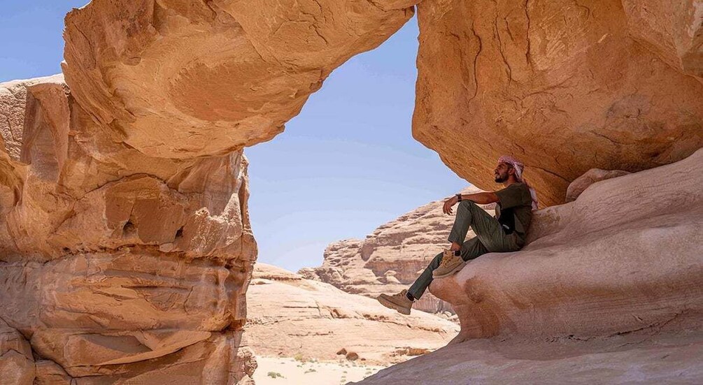 Your journey begins in Wadi Rum Village, where you’ll meet Matar at the rest house. From there, you’ll head to his family home for a welcoming cup of traditional Bedouin tea. This is the perfect moment to get to know your guide, ask questions, and talk through your day’s adventure.