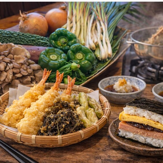 Make Okinawan-style tempura, including mozuku seaweed, island vegetables, and local fish. Then, prepare Pork Tamago Onigiri, a Spam and egg rice ball. Learn proper batter texture, frying timing, and rice shaping techniques.