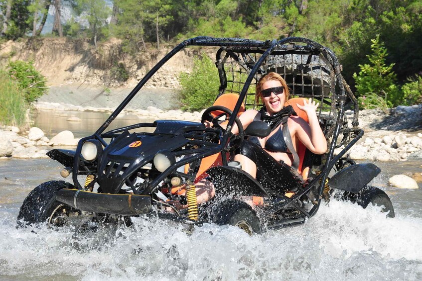 Buggy Safari Dimulai: Tur mendebarkan ini akan melewati hutan, dasar sungai dan area berlumpur di pinggiran Marmaris. Semua kendaraan kami terawat dengan baik untuk memberikan Anda perjalanan yang sangat menyenangkan dan bergelombang melalui semua medan ini. Total waktu mengemudi dalam tur ini adalah 1 jam, di mana para profesional kami akan bersama Anda setiap saat untuk memastikan keamanan dan kesenangan Anda.