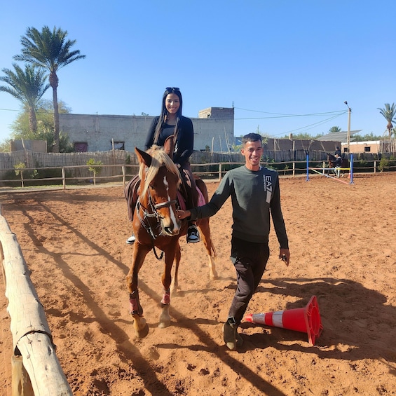 Begin the activity with a pickup at your hotel in Marrakech. Next, arrive at the eco-lodge about 6 miles (10 km) from the city. Sip on a cup of mint tea at the pool when you arrive. Then, saddle up and ride your horse through the Palmeraie, a palm oasis. Follow your guide and take in the view.