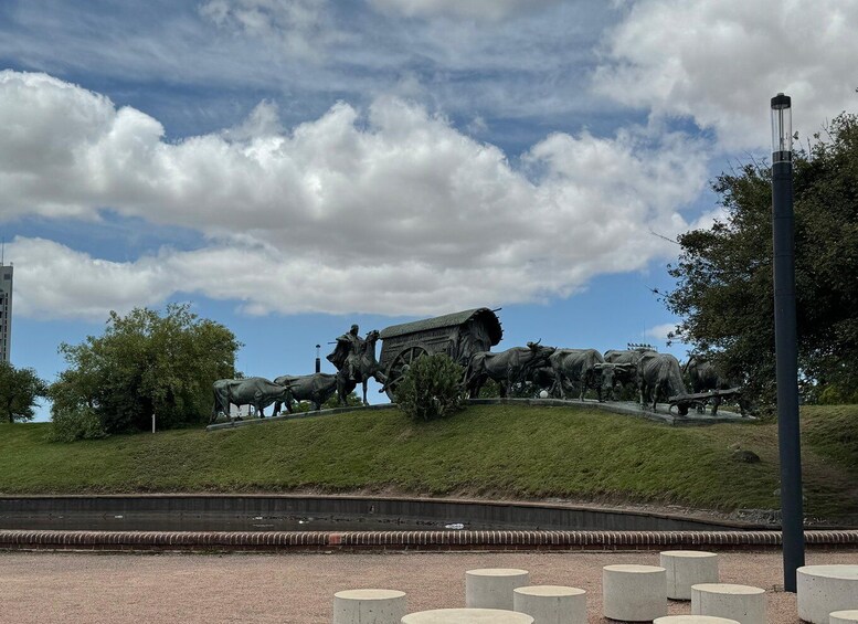 Embark on a scenic ride to Mercado Agricola Montevideo, a revitalised market offering diverse goods. Explore the Obelisco De Los Constituyentes, honouring the writers of Uruguay's first constitution. Parque Batlle features La Carreta monument and Estadio Centenario, a World Football Historical Monument.