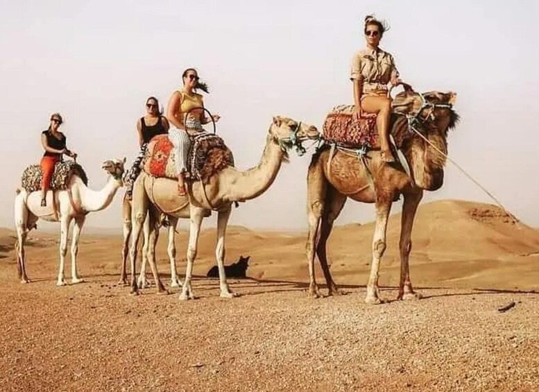 Perhentian terakhir sebelum kembali ke Marrakech adalah Gurun Agafay untuk menikmati naik unta selama 15 menit dengan kostum bertema pengembara. Nikmati teh mint Prancis di kamp Berber sebelum memulai perjalanan pulang.