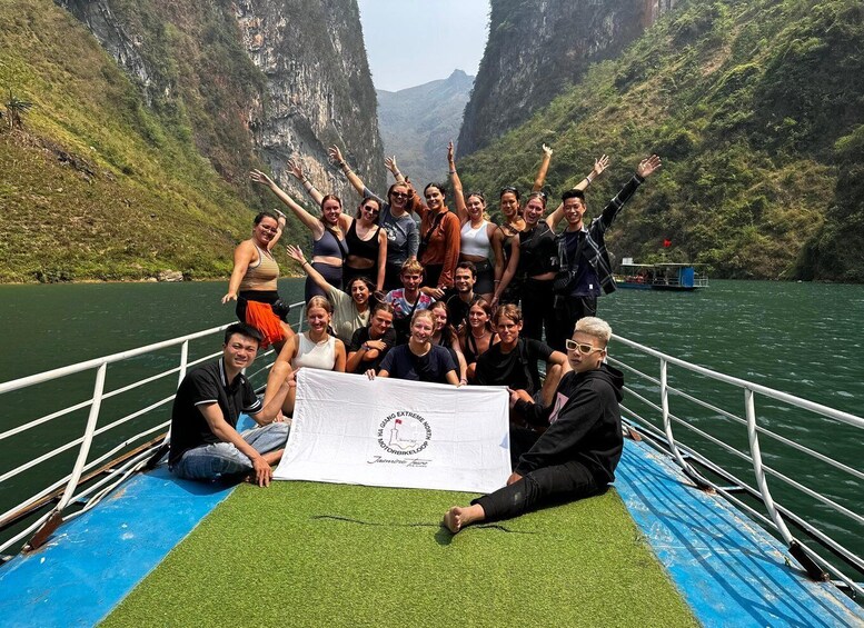 Pukul 8:00 pagi kita bangun dan sarapan di Hostel dan mempersiapkan segala sesuatunya untuk perjalanan, Pukul 8:30 pagi kita bertemu dengan pemandu wisata dan memulai perjalanan menaklukkan Ha Giang loop yang indah, jalan berliku yang indah dari Ha Giang. Naik ke Thai An, pemandangan indah di bawah celah adalah sungai biru jernih. dan masuk lebih dalam, menyeberangi celah Thai An dan makan siang di sebuah desa kecil di tepi sungai di desa Thai An. Setelah makan siang, lanjutkan perjalanan ke Lembah Duong Thuong, sebuah keindahan yang langka di Vietnam. Kami berkendara dikelilingi oleh pegunungan yang menjulang tinggi dan ladang jagung di sebelah jalan. Sesampainya di Du Gia pada sore hari, kita akan menuju air terjun peri untuk bersantai setelah seharian bertamasya. Di malam hari, kita akan menikmati makan malam khas Vietnam dan bernyanyi karaoke serta minum happy water bersama semua orang di Homestay.