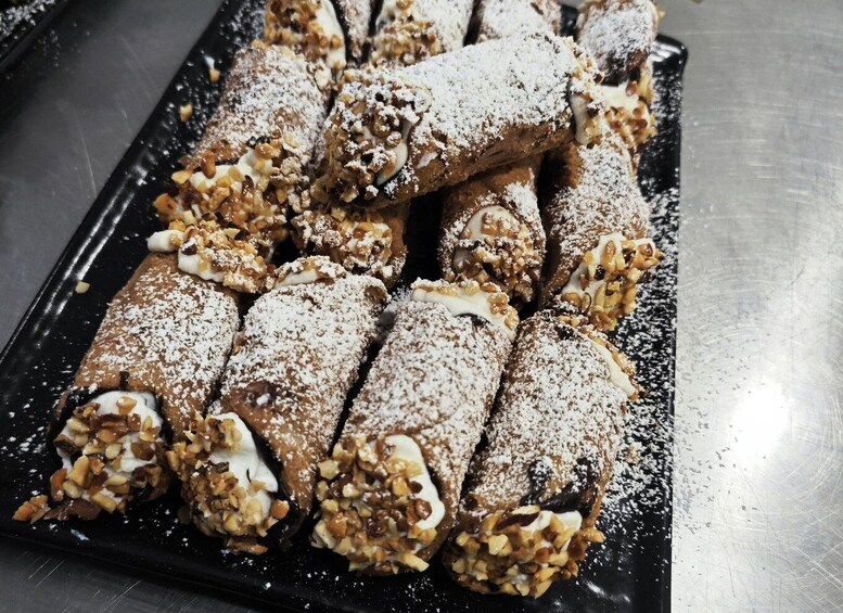 -Dekorasi dan pencicipan hidangan penutup cannolo Sisilia