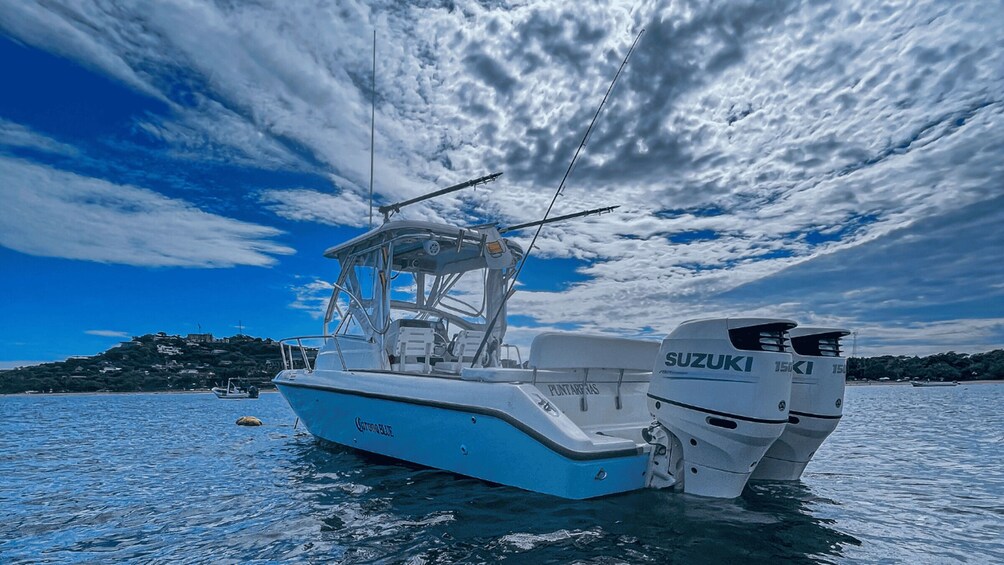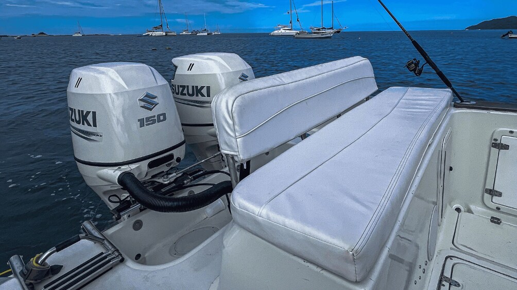 Mulailah perjalanan Anda di atas kapal Anda untuk hari ini, konsol tengah 28 'yang luas yang ditenagai oleh mesin Suzuki 150 HP kembar. Kapal ini memadukan kenyamanan, keamanan, dan kenikmatan dengan sempurna, memastikan bahwa hari Anda di lautan adalah semua yang Anda inginkan. Ucapkan selamat tinggal pada kompromi, karena kapal ini menawarkan fasilitas seperti toilet, tempat duduk yang nyaman, dan tempat teduh yang penting untuk melindungi Anda dari sinar matahari Kosta Rika. Fitur keselamatan modern berlimpah, termasuk peralatan elektronik penting seperti pencari ikan, GPS, VHF, dan radio Bluetooth, yang menjamin pengalaman bahari yang aman dan menyenangkan.