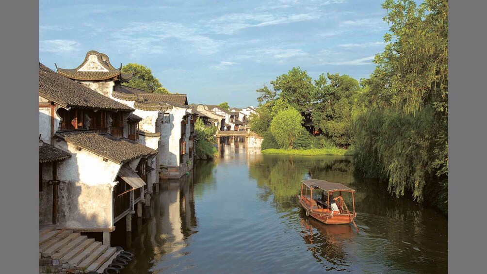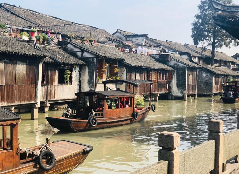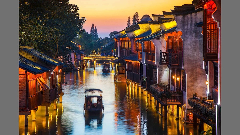 Manjakan diri Anda dengan makan siang lokal yang menyenangkan, menikmati cita rasa masakan otentik. Setelah itu, rasakan ketenangan kanal-kanal Wuzhen saat Anda menaiki perahu santai, sambil mengagumi pemandangan indah di sekeliling Anda. Bagi mereka yang berangkat pada sore hari, makan malam yang lezat akan ditawarkan sebagai gantinya, sehingga Anda dapat menikmati pesona kota saat matahari terbenam.