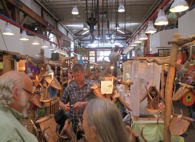 Makan siang dibayar oleh para tamu dan tempat ditentukan pada hari Tur berdasarkan keputusan kelompok; pemandu Anda akan memberi tahu Anda tentang apa yang tersedia. Catatan: Bus Tur tidak lagi diizinkan di Pasar Umum Pulau Granville mulai 4 Juni 2021. Sebagai gantinya, kami menawarkan Tur berjalan kaki di Pasar dan beragam peritelnya, menyoroti produk seniman yang unik serta hasil bumi dan makanan lezat (bagian dari Tur ini hanya dapat dilalui dengan berjalan kaki dan berjarak sekitar 3,5 blok)
