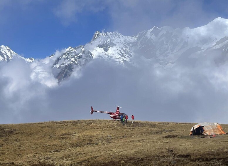 Begin your adventure with a helicopter flight from Pokhara to the Kori Highlands. Fly over the quaint Gurung villages, lush forests, farmlands, and rivers as you close in on highlands that are a direct base to many snow-capped Himalayas.