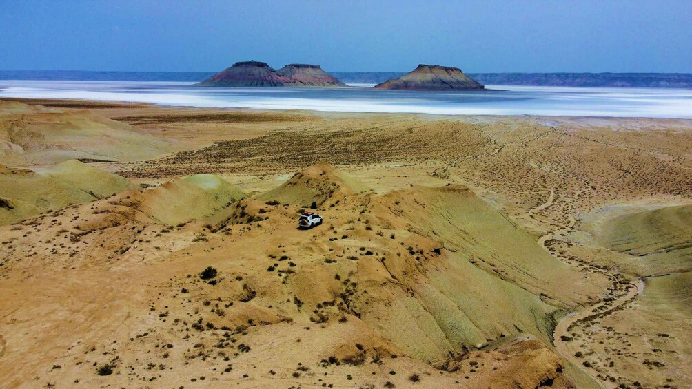 Begin your adventure in Aktau and quickly head deep into wild territory, where civilisation disappears and vast horizons take over. Visit 8 key locations, each revealing a different face of this ancient land shaped by oceans, salt, wind, and time.