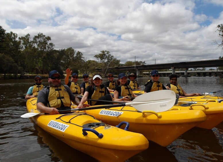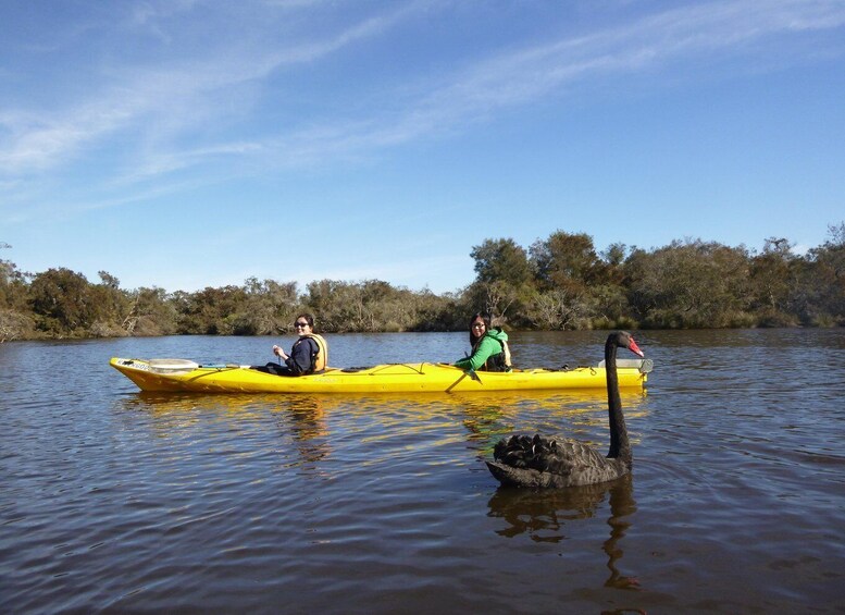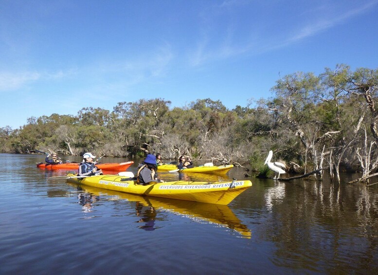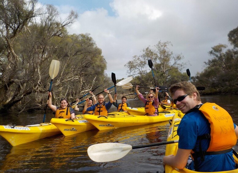 This is a fun tour with no kayaking experience needed. Meet your friendly and experienced guide who will help you safely unload the kayaks from our caravan, fit you with a life jacket and show you how to safely kayak. The river is very calm and sheltered so you can enjoy a relaxed paddle whilst marvelling at the beautiful water birds and natural paperbark trees. As you paddle your guide will tell you about the interesting history and abundant wildlife in the Canning River Regional Park. At the half way point you have an opportunity to have a short break. Bring your own snack and drink to enjoy ashore or in your kayak. After paddling back to the start point, we get a chance to say thanks and goodbye to your new paddling buddies and the beautiful Canning River, before loading the kayaks back on to the caravan.