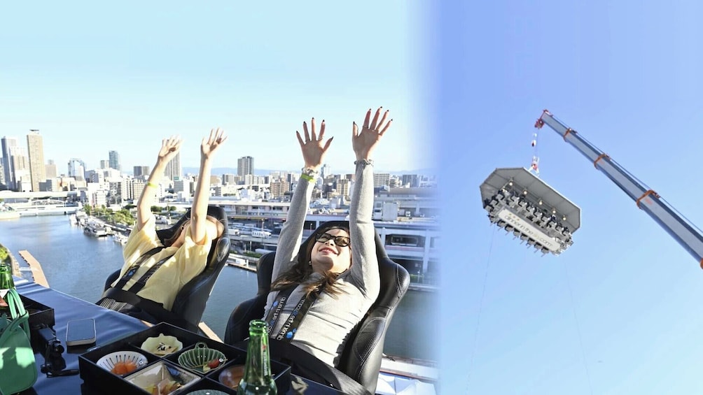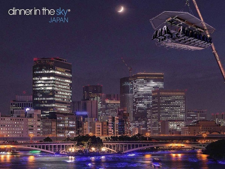 Gondola yang dilengkapi dengan meja dan kursi ini terangkat sekitar 40 meter ke udara, dan pengunjung dapat menikmati pemandangan sambil menyantap hidangan “otsumami” di atas piring-piring kecil dan minum sepuasnya.