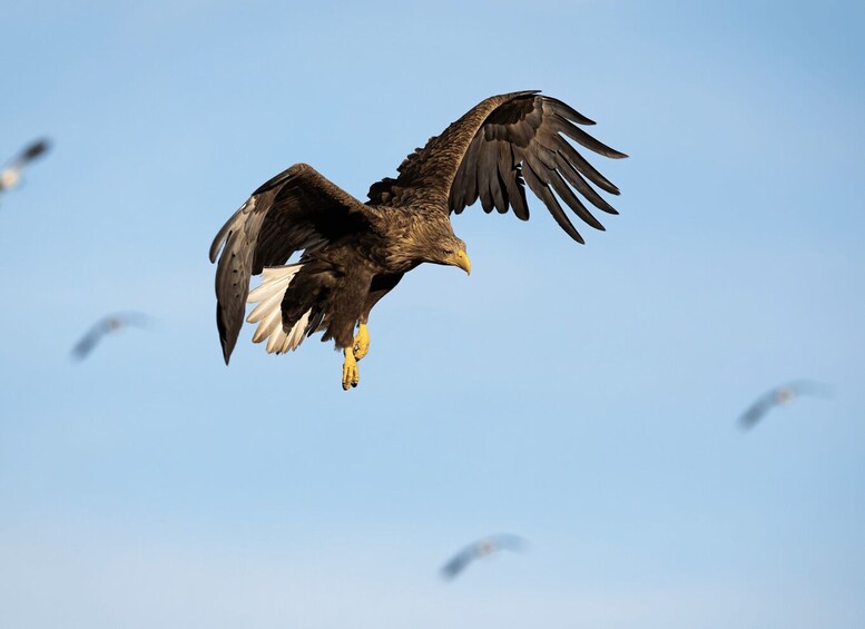 Pelayaran yang memukau ini tidak hanya menjanjikan perjumpaan dengan elang yang ikonis ini, tetapi juga menawarkan sekilas keindahan kekayaan pesisir Norwegia yang belum terjamah. Pemandu kami yang berpengetahuan luas akan menghibur Anda dengan wawasan tentang margasatwa dan ekologi kawasan ini, memberikan pemahaman yang lebih mendalam tentang pentingnya elang ekor putih dalam ekosistem ini. Baik Anda penggemar berat burung atau sekadar mencari petualangan yang tenang dikelilingi kemegahan alam, tur perahu tak terlupakan di Lofoten ini menjamin malam yang penuh dengan keajaiban, keindahan, dan kehadiran luar biasa elang laut yang megah ini.
