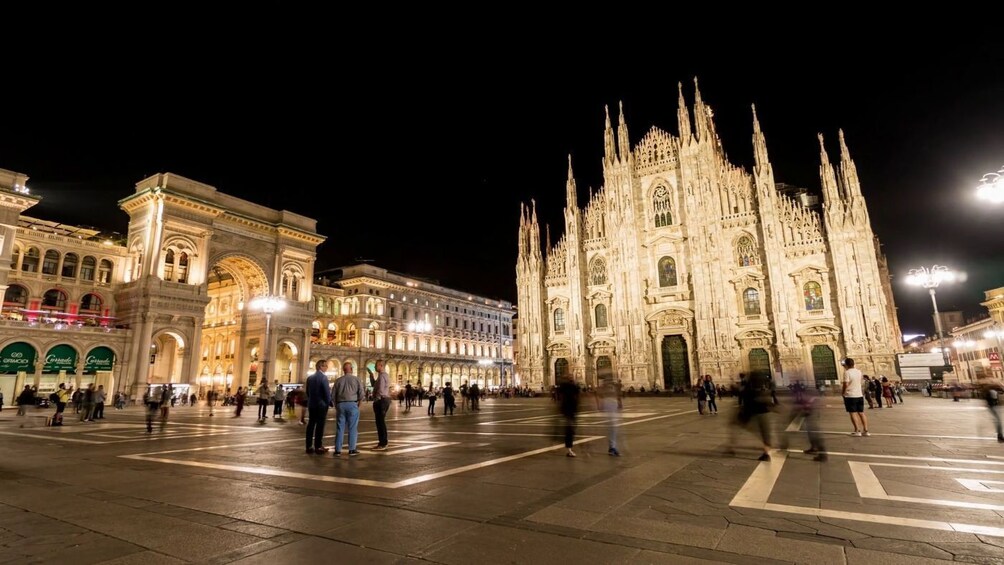 Perjalanan Anda dimulai dari Piazza del Duomo, jantung kota Milan, tempat Katedral Duomo yang ikonik memesona di bawah cahaya malamnya. Kagumi mahakarya Gotik yang memukau sebelum menuju ke Distrik Brera, pusat artistik Milan, yang terkenal dengan pesona bohemian, jalan-jalan bersejarah, dan suasana malam yang semarak. Selanjutnya, lewati Scala Opera House yang legendaris, salah satu tempat opera paling terkenal di dunia, yang diterangi dengan segala kemegahannya.