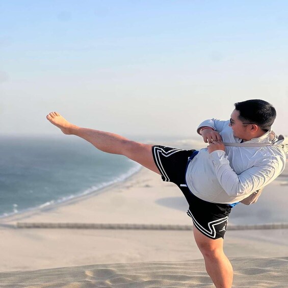 Feel the adrenaline during an exhilarating dune bashing session, where your expert driver navigates towering sand dunes with precision and safety. Capture breathtaking panoramic views and enjoy dedicated photo stops in the heart of the desert, where endless horizons create the perfect backdrop.