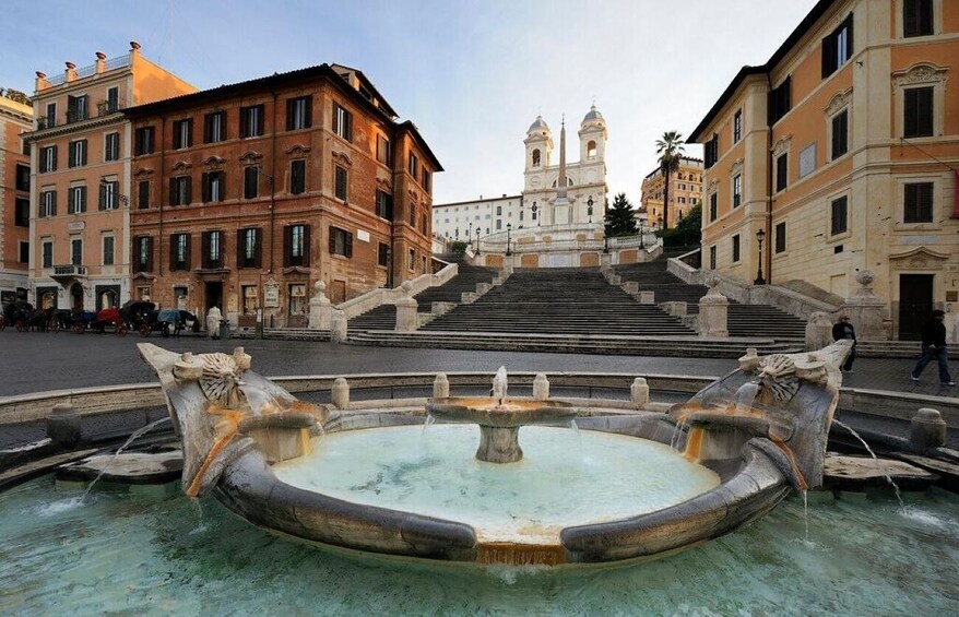 Akhiri Tur Anda di Piazza di Spagna yang elegan dan Spanish Steps (Scalinata di Trinità dei Monti). Naiki tangga ikonik yang menawarkan pemandangan panorama, dan jelajahi Fontana della Barcacciadi dasarnya, permata Bernini lainnya yang berbentuk seperti perahu yang tenggelam. Pemandu Anda akan menjelaskan peran piazza dalam sejarah sosial Roma, mulai dari rumah Keats hingga daya tarik mode kelas atas.