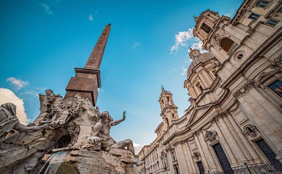 Mulailah perjalanan Anda di Piazza Navona yang semarak, salah satu alun-alun paling ikonik di Roma. Kagumi Fontana dei Quattro Fiumi (Air Mancur Empat Sungai) yang memukau, sebuah mahakarya dari Gian Lorenzo Bernini, yang melambangkan sungai-sungai besar di dunia. Pemandu lokal Anda yang ahli akan menguak kisah-kisah di balik patung-patung dramatis Bernini dan suasana alun-alun yang semarak, yang akan menjadi awal dari hari yang penuh dengan Penjelajahan.