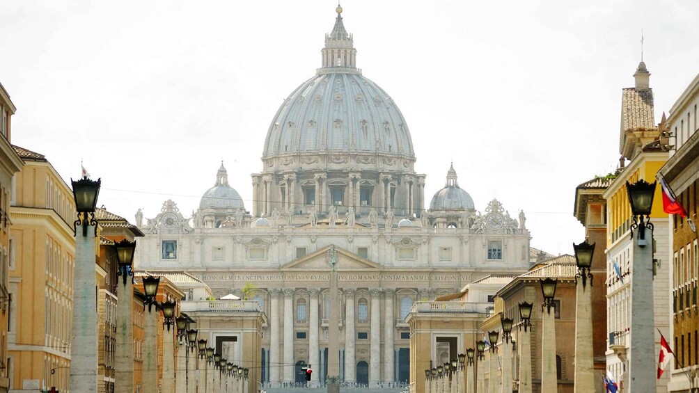 Tur berakhir di Lapangan Santo Petrus, yang didominasi oleh Kubah Michelangelo yang megah dan dikelilingi oleh barisan tiang Bernini yang terkenal.
